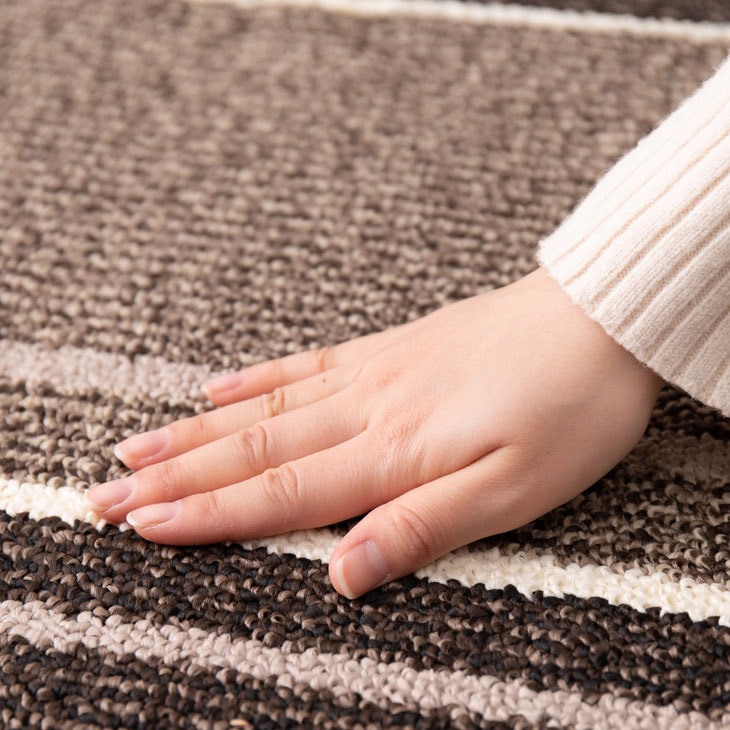 撥水加工:食べこぼしや飲み物をこぼしてもサッと拭き取れるので、お手入れが簡単です。小さなお子様やペットがいるご家庭でも安心してお使いいただけます。 防汚加工:汚れがつきにくく、ついても落ちやすいので、清潔な状態を長く保てます。 抗菌・防ダニ加工:菌やダニの繁殖を抑え、小さなお子様やアレルギー体質の方も安心してお使いいただけます。 キズ防止:椅子やテーブルの出し入れによる床の傷つきを防止します。 ホコリ防止:ダイニングテーブルの下に敷くことで、ホコリの舞い上がりを抑え、お部屋を清潔に保てます。 ループパイル:ゴミが入り込みにくく、掃除機やほうきでサッとゴミを取り除けるので、お手入れが簡単です。 裏面不織布:床を傷つけにくく、滑り止め効果もあります。