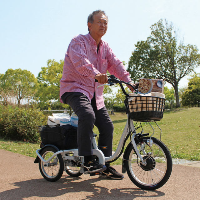 両足が地面につくので安心して乗車できるロータイプ電動アシスト付き三輪自転車。リチウムイオンバッテリーは、バッテリーが小さく軽いので持ち運びもラクラク。コンセントでかんたん充電OK。スイング切替バーは、スイング機能付きで大回りせずカーブが曲がれます。アシストモーターは、250Wブラシレスモーター搭載。坂道もばっちりアシスト。ライトは、手元のスイッチでかんたんに点灯。夜間も安心です。TSマーク(型式認定番号)取得TSマークが表示された電動アシスト車は、警察庁より自転車であることが認められた製品です。家庭用コンセントで簡単に充電できます。
