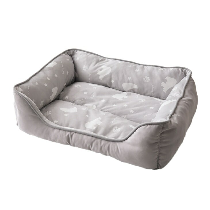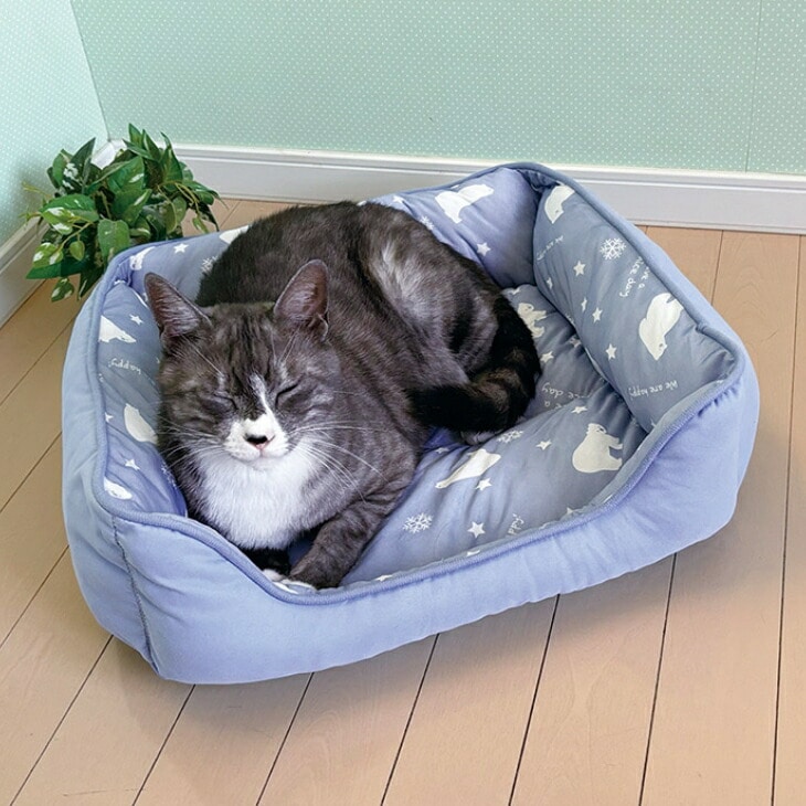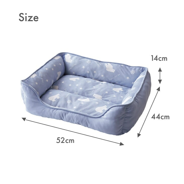 ●色/ブルーラベンダー・オパールグレー ●サイズ/約幅52×奥行44×高さ14cm ●重さ/約390g ●素材/白くま柄部分:ポリエステル・ナイロン、無地部分:ポリエステル、中わた:ポリエステル ●仕様/手洗い、小型犬・猫兼用 ●製造国/中国製