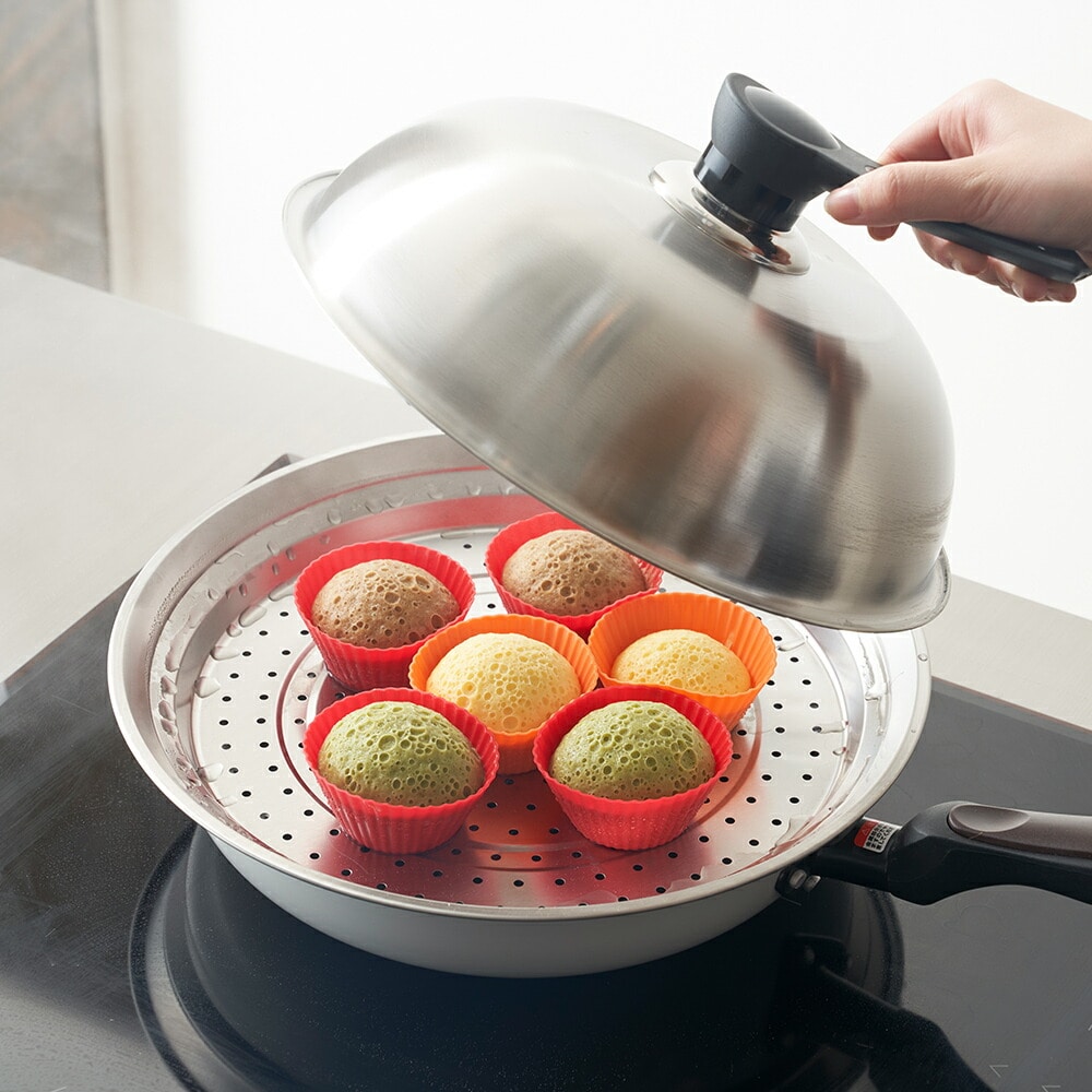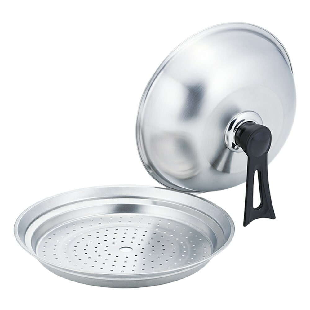 ●素材/フライパンスチーマー:目皿:ステンレス鋼(クロム18%、ニッケル8%)、蓋・取手台座:ステンレス鋼、取手:フェノール樹脂