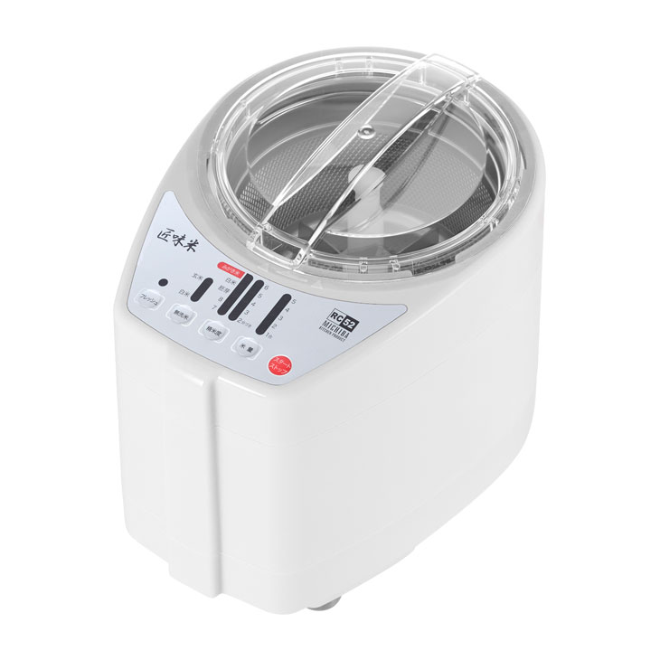 【道場六三郎氏監修】家庭用精米機 「匠味米」(選べる10種類の精米モード) ご家庭で料亭の味を。お米の美味しさを極める、道場六三郎氏こだわりの精米技術を一台に。「炊きたてのご飯をもっと美味しくしたい」「玄米の栄養は摂りたいけど、家族は白米派…」「古くなったお米も美味しく食べきりたい!」そんな食卓のお悩みに、料理人・道場六三郎氏監修の高性能家庭用精米機「匠味米」が、お米の新たな美味しさをお届けします! 《ここが違う!道場六三郎氏の技を再現した「匠味米」の精米技術》 道場の技を再現!プロの「食味評価」をプログラム化 料理の鉄人、道場六三郎氏の繊細な食味評価に基づき、精米状態を決定しプログラム化。お米本来の旨みと香りを最大限に引き出す精米を実現します。 お米に優しい「3段階自動減速制御」 世界で評価された信頼のモーターを使用し、マイコン制御で「高速」「中速」「低速」の3段階に精米スピードを自動で減速。これにより、精米時の余分な摩擦を大幅に軽減し、お米の「温度上昇」や「割れ」を抑え、均一で美しい仕上がりに。 玄米5合がわずか2分30秒で精米可能 食べたい時に食べたい分だけ、手軽に精米したての新鮮なご飯を味わえます。 【進化!】選べる10種類の精米モード 基本の白米だけでなく、うるち米を「みがき米」「白米」「胚芽米」「8分/7分/6分/5分/4分/3分/2分づき米」の全10種類に精米可能。健康志向の方から、食感や風味にこだわる方まで、ご家族それぞれの好みに合わせて調整できます。 「みがき米」機能: 白米をさらにみがき上げることで、表面の酸化した層を取り去り、よりツヤと旨みのある「おいしい白米」に仕上げます。 「無洗米」もご家庭で 玄米からも白米からも、それぞれ「無洗米」に仕上げることが可能。洗米の手間が省け、時短にも繋がります。 「フレッシュ」モードで古米が蘇る 古くなってきたお米の酸化した部分を効果的に取り除き、本来の白米の香り・味を蘇らせます。もう、古米だからと諦める必要はありません。いつでも炊きたてのような美味しさを楽しめます。 便利なメモリ機能搭載 前回使用した精米設定を記憶するメモリ機能付きなので、次回からも同じ設定でスムーズに精米できます。 お手入れラクラク設計 ぬかボックスや精米かごなどは簡単に取り外し可能。サッと洗えるので、常に清潔な状態を保てます。 安心の日本製 確かな技術と品質管理のもと、日本で製造されています。安心してお使いいただけます。