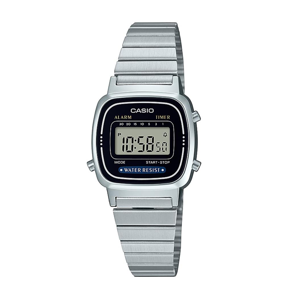 シンプルで使いやすい!カシオ スタンダードデジタルウォッチ 「どんなファッションにも合わせやすい時計が欲しい」「電池交換の手間が少なく、機能的な時計を探している」そんな方に最適な、カシオのスタンダード定番デジタルウォッチです。シンプルで飽きのこないデザインは、カジュアルからビジネスまで様々なコーディネートにマッチ。軽くて丈夫、そして電池寿命約7年という優れた実用性を兼ね備えています。 【おすすめのポイント】 1.調整簡単なフリータイプバンド: 留め具はフリータイプのアジャスト式ステンレスバンドを採用。工具を使わずに、ご自身で簡単にバンドの長さを調整できるため、手首にぴったりフィットさせられます。 2.安心の生活防水&長寿命バッテリー: 雨や手洗い時も安心の日常生活防水仕様。さらに、一度の電池交換で約7年稼働する長寿命バッテリーを搭載しているため、手間がかからず経済的です。 3.便利な機能が充実: 時刻が見やすいLEDバックライト、ストップウォッチ、アラーム、時報、フルオートカレンダーなど、日常生活で役立つ機能が充実しています。