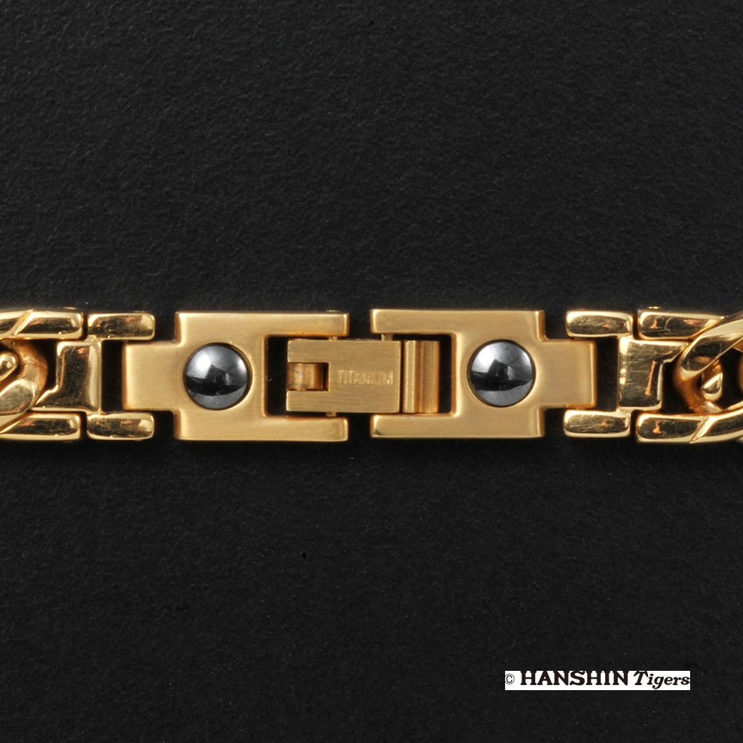 「阪神タイガース創設90周年という記念の年に、特別なメモリアルグッズが欲しい」「永遠に輝き続ける、一生もののアクセサリーを身につけたい」そんな熱いファンの願いを叶える、球団認証の豪華ブレスレットです。ボディは軽くて頑丈なチタン素材に、NASAの宇宙開発技術である純金IP加工を施しました。メッキと違い剥がれることがなく、阪神タイガースのように永遠の輝きを放ち続けます。