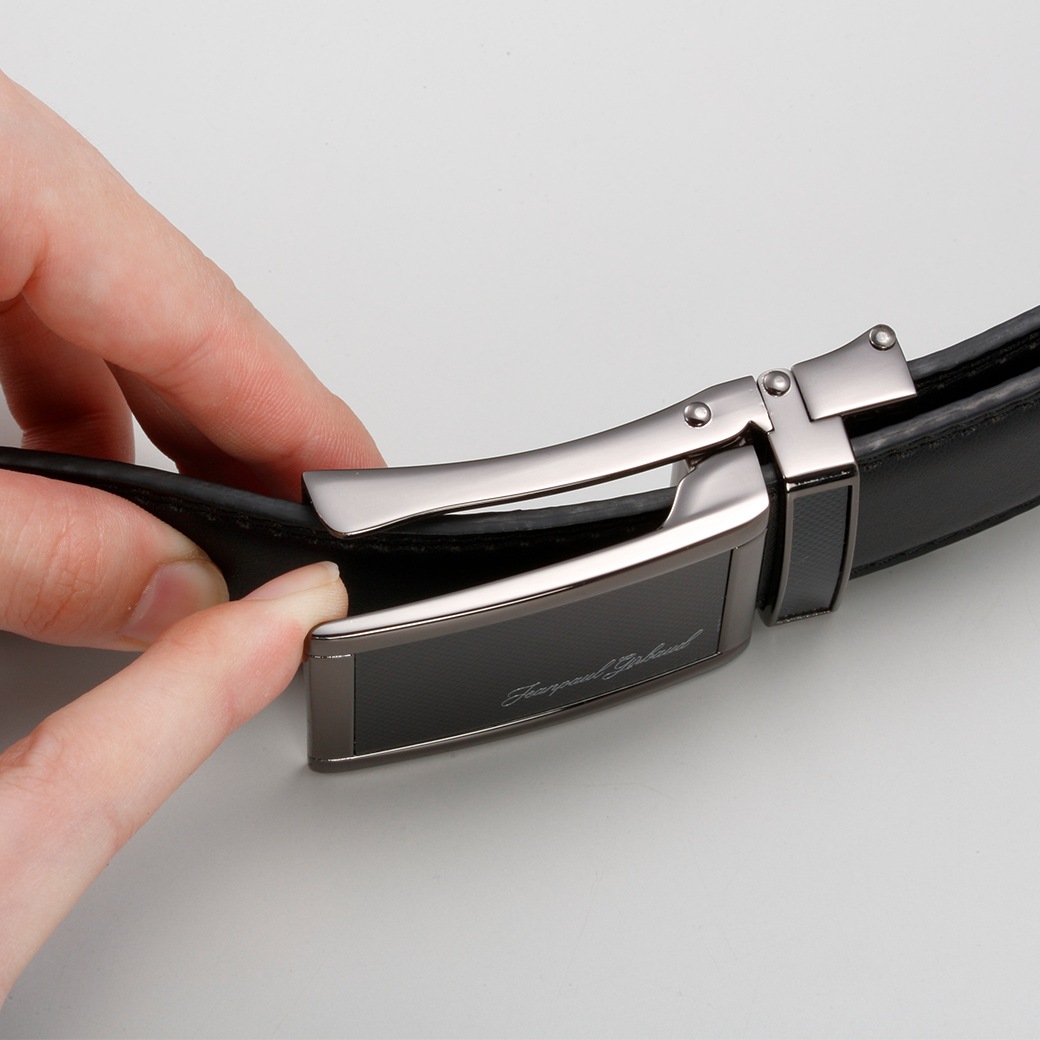 お洒落なブランドのスライド式ベルト かんたんに微調整もでき、食後や座った時もサッと緩められます。