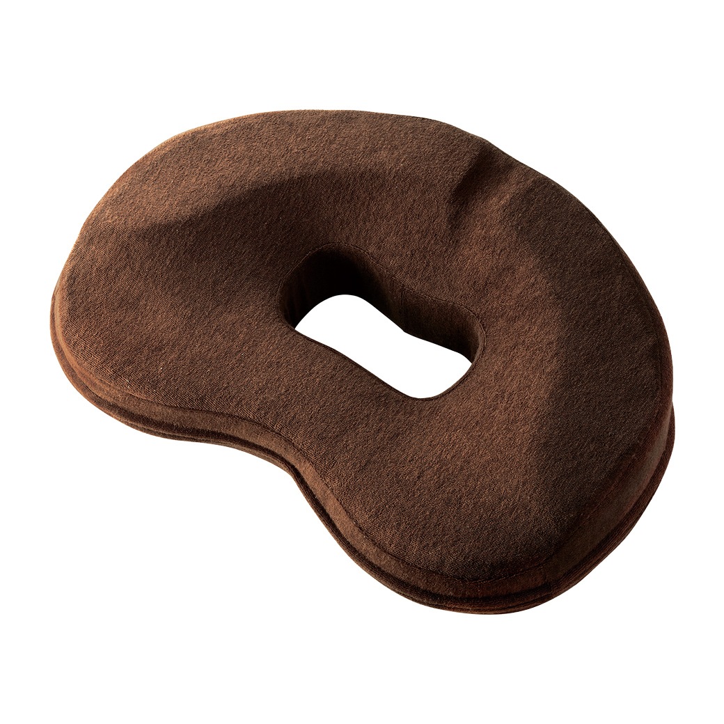 低反発・高反発・硬質ウレタンを組み合わせた贅沢な3層構造を採用。上段の高反発ウレタンが骨盤を左右・後方から包み込み、沈み込みを抑える下段が座骨への圧迫を劇的に軽減します。座骨の形状に合わせた中央の穴が負担を分散させるため、デスクワークや長距離ドライブなど、長時間の着座でも驚くほど快適です。