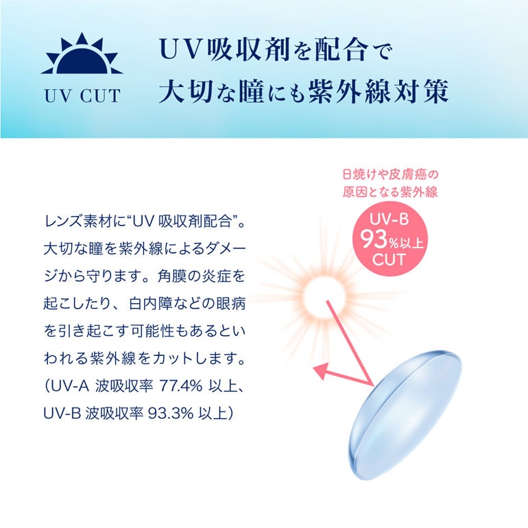 UVカット:UV-A…77.4%以上カット、UV-B…93.3%以上カット