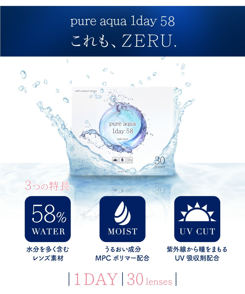 ピュアアクアワンデー 58 byZERU. 高含水 30枚入り 12箱セット ザラボ 1日使い捨て コンタクト1day 【送料無料】