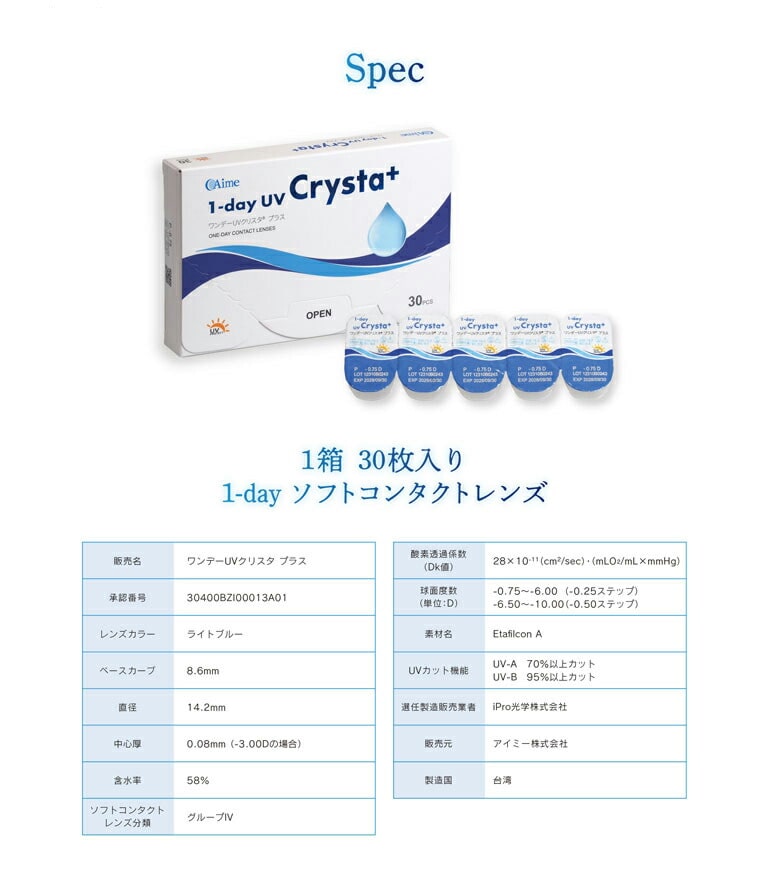 ◆メール便送料無料◆ワンデーUVクリスタプラス 30枚入 2箱セット 近視用クリアコンタクト