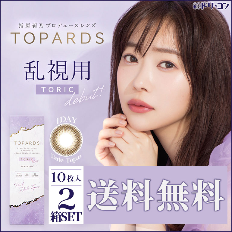 ◆メール便送料無料◆ カラコン ワンデー トパーズ トーリック TOPARDS TORIC 10枚入 2箱セット 1日使い捨て 1day 乱視用 度あり 度なし 高含水 UVカット PIA 指原莉乃 カラーコンタクトレンズ