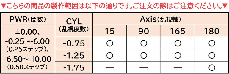 CYL(乱視度数):-0.75、-1.25、-1.75