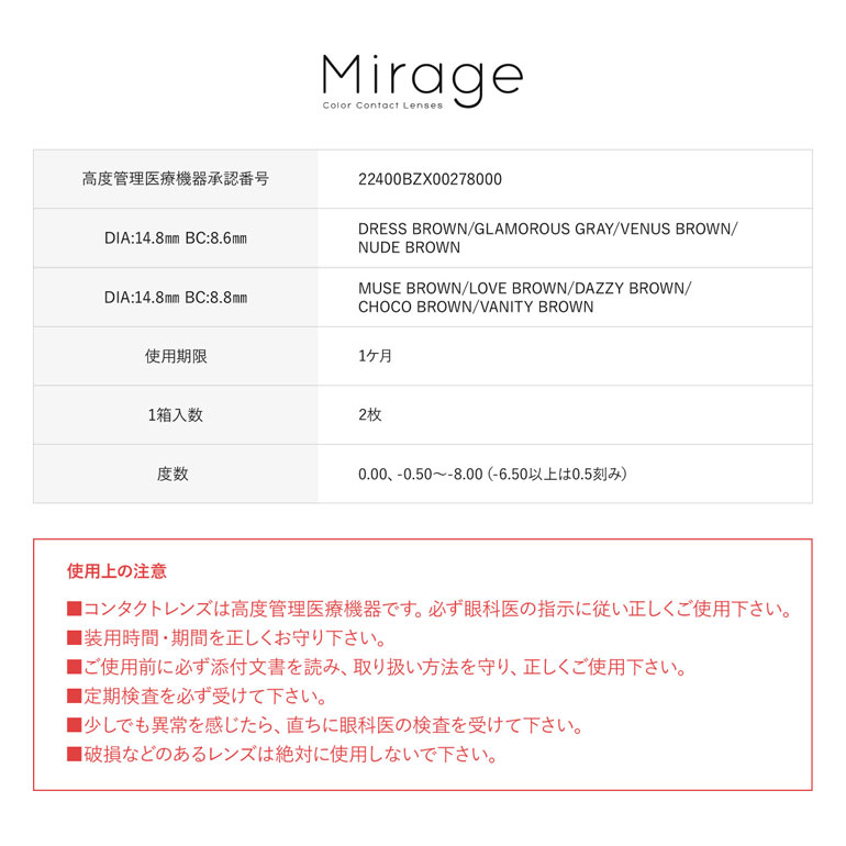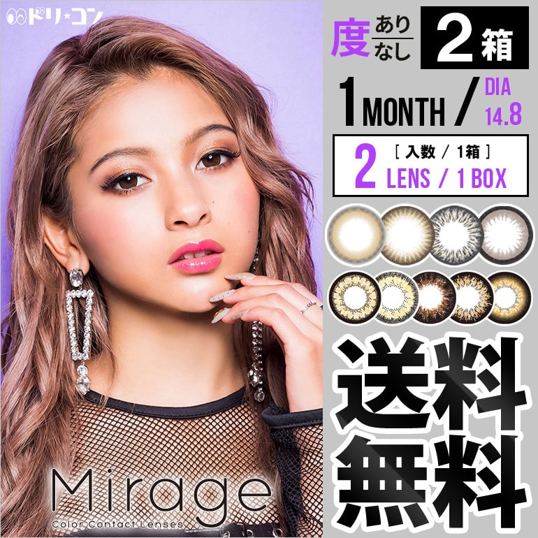 ◆メール便送料無料◆ Mirage ミラージュ 2枚入り 2箱セット / 1ヵ月交換 カラコン 度なし 度あり ギャル セクシー 盛れる 映え コスプレ PIA 1month 木村有希 ゆきぽよ 1month