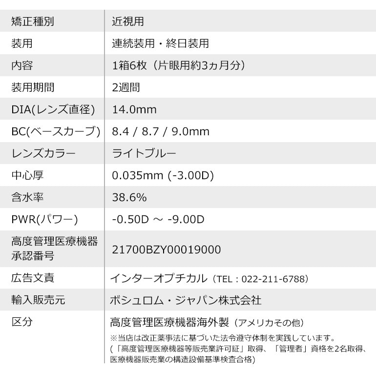 BC(ベースカーブ):8.4 / 8.7 / 9.0mm