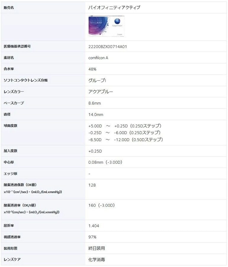 ☆処方箋提出☆ バイオフィニティアクティブ 6枚入り 4箱セット ※近用サポート度数+0.25(加入度数[ADD]) 2週間使い捨てコンタクトレンズ コンタクト コンタクトレンズ 【送料無料】