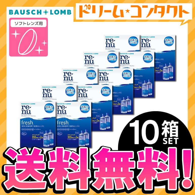 【送料無料】レニューフレッシュツインパック(355ml×2)10箱セット ソフトレンズ用洗浄・すすぎ・消毒(保存)液 ボシュロム