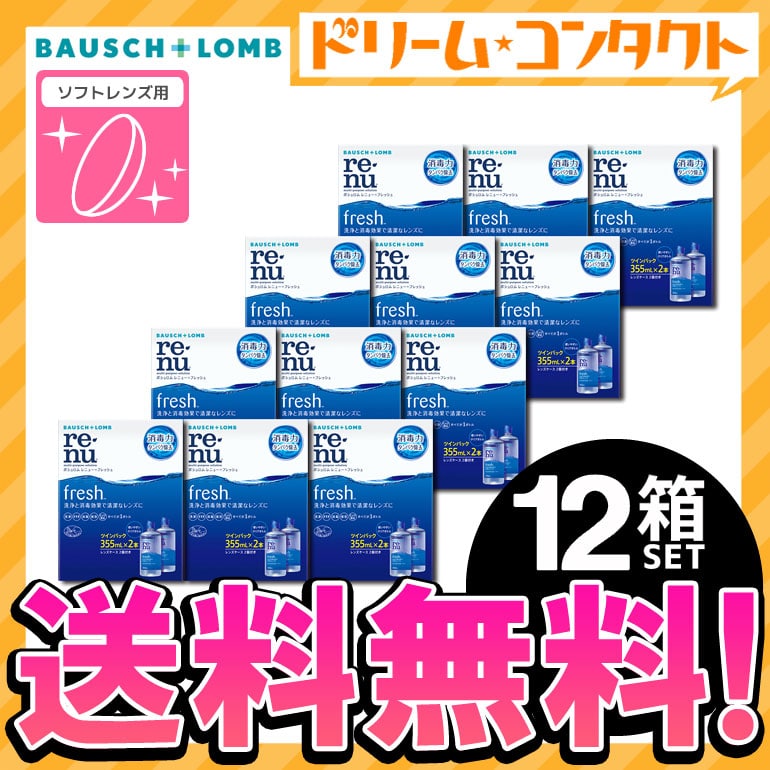 【送料無料】レニューフレッシュツインパック(355ml×2)12箱セット ソフトレンズ用洗浄・すすぎ・消毒(保存)液 ボシュロム