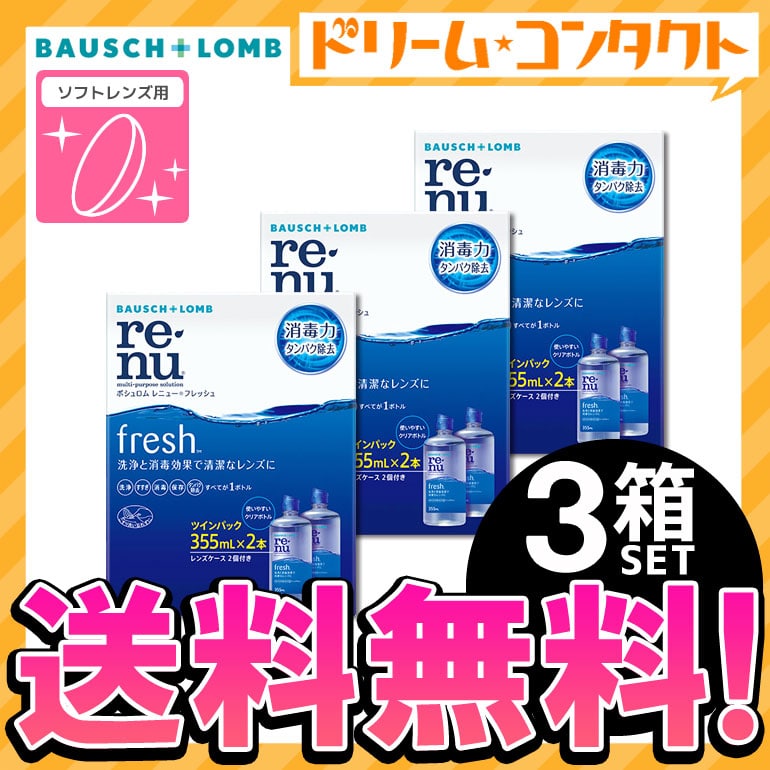 【送料無料】レニューフレッシュツインパック(355ml×2)3箱セット ソフトレンズ用洗浄・すすぎ・消毒(保存)液 ボシュロム