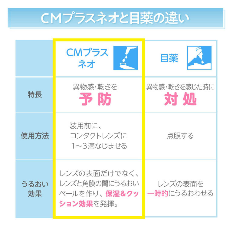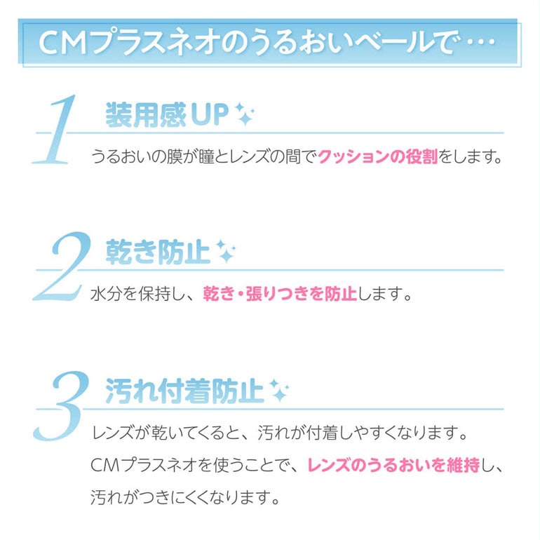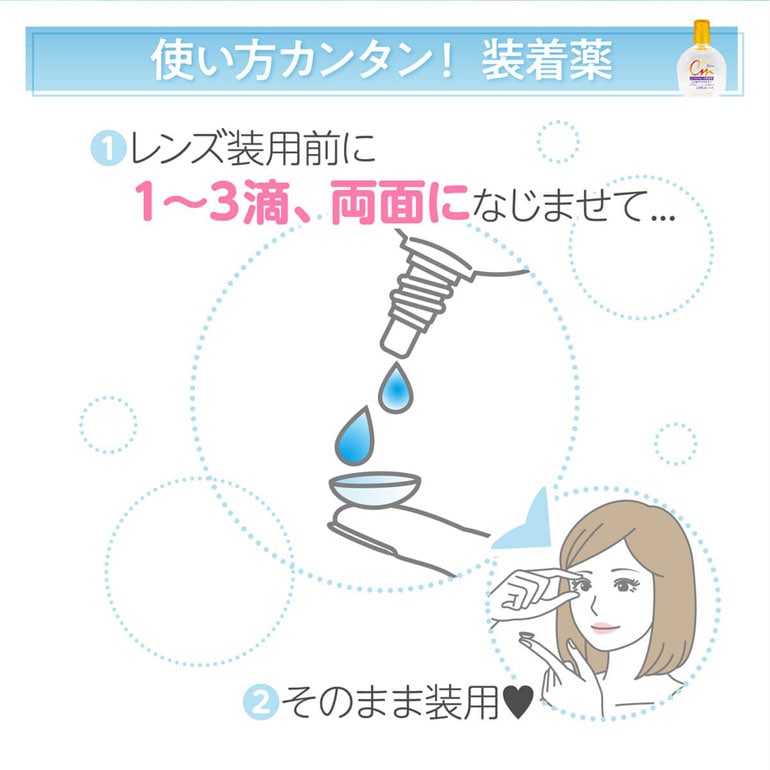用法用量:本剤の1~3滴で、コンタクトレンズの両面をぬらして装着すること。