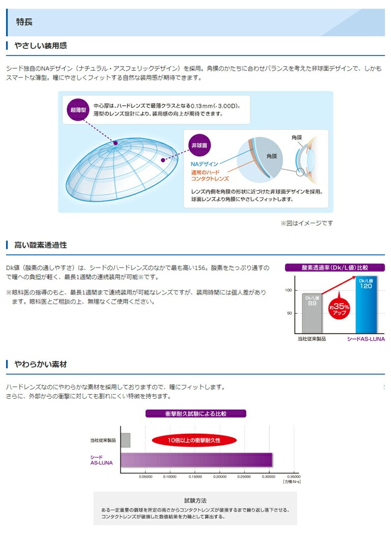 【送料無料】シード保証付 シード AS-LUNA ルナ【2枚セット】/ 長期装用 連続装用可能レンズ 最長1週間 コンベンショナル ハードコンタクトレンズ シード SEED 非球面 薄型