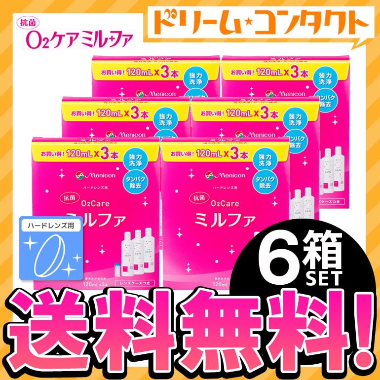 【送料無料】抗菌O2ケアミルファ3本パック 120ml×3本 6箱セット ハードレンズ用洗浄・保存・タンパク除去液 メニコン