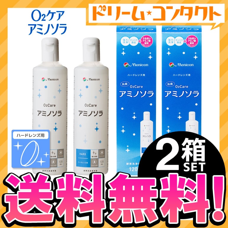 【送料無料】メニコン o2ケアアミノソラ 120ml 2本セット ハードレンズ洗浄・保存液 メニコン オーツーケア