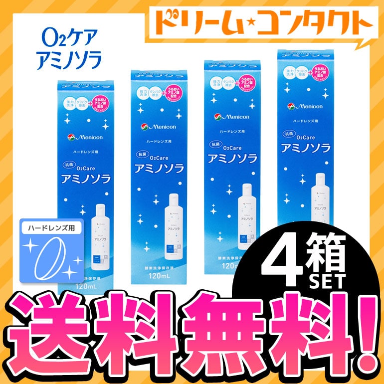 【送料無料】o2ケアアミノソラ 120ml 4本セット ハードレンズ洗浄・保存液 メニコン オーツーケア