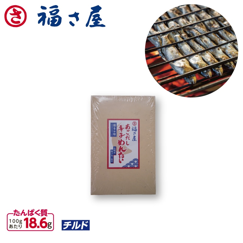 長崎県産焼きあごと塩のみで造られたこだわりのだしを使用した調味液にじっくり漬け込んだあごだしめんたいこです。