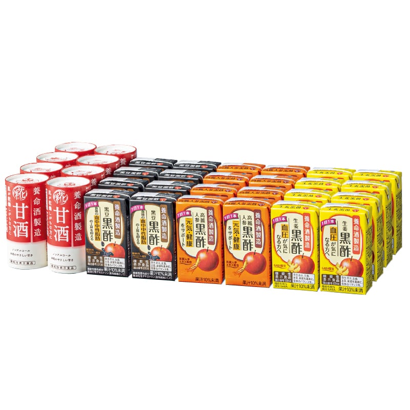 ●商品内容/養命酒製造甘酒・黒豆黒酢・高麗人参黒酢・生姜黒酢 各125ml×8