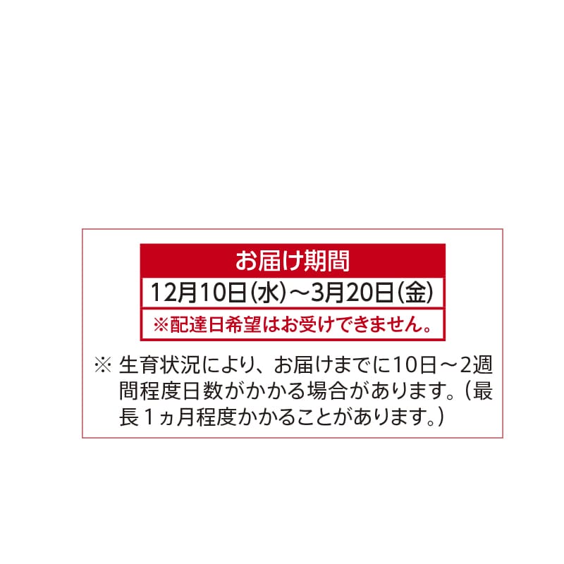 ※天候・生育状況等により発送開始日が前後(1週間~10日程度)する場合がございますのでご了承ください。