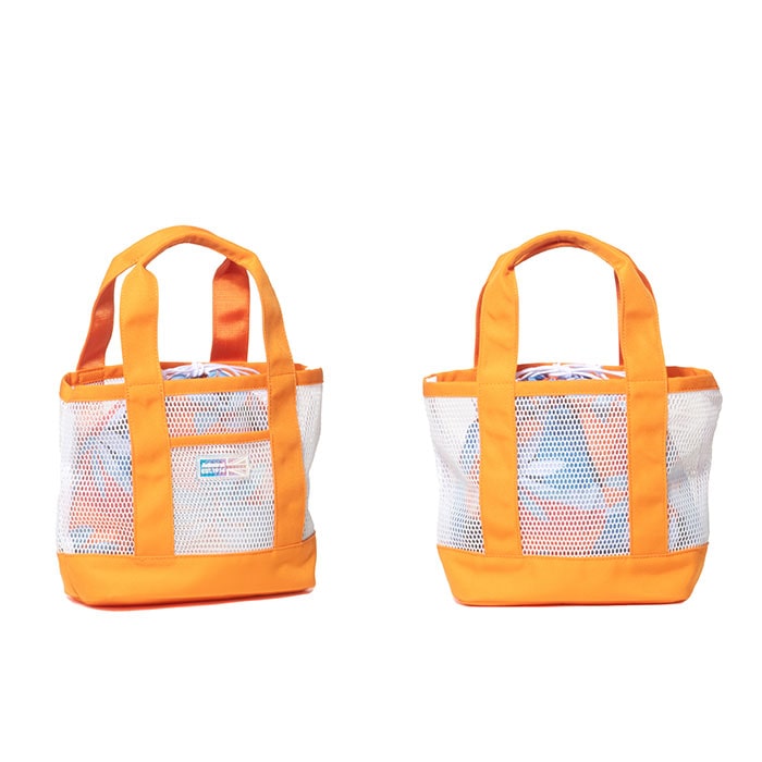 メッシュバッグの中の巾着の柄が見えるのが特徴。