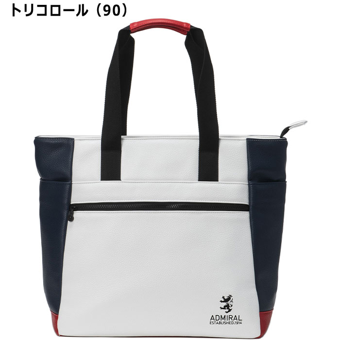 高級感のある深めのエンボス合皮を使用したトートバッグ。 ゴルフシーンに映えるトリコロールカラーと、タウンユースに最適なブラックカラーが用意されています。 前後には外側ポケットがあり、内側にもポケットが装備されており、充実した収納が特徴です。