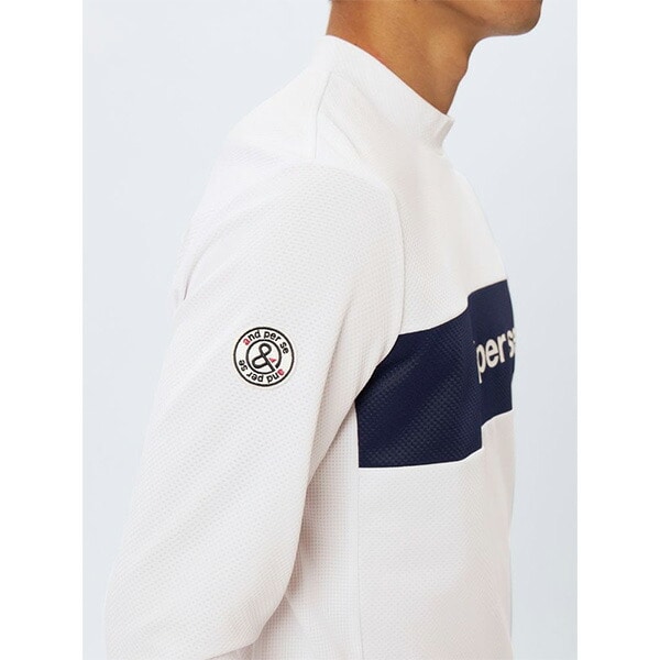 スポーティな印象の胸元切替デザインに加え、左袖部分にand per se 2025FW