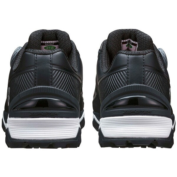 - 【商品説明】 高いグリップ力とクッション性ある履き心地の「ゆったり幅広4Eモデル」。 前モデル(SHG380)対比「足幅」を広げ、圧迫感のない「よりゆったりとした履き心地」にこだわったモデルです。 上層(柔らかめ)と下層(硬め)の硬度を変えた新設計「2重構造ミッドソール」と、踵部の「TPU製ヒールカウンター」により、クッション性と安定性を確保しています。さらに、インソールは「ゼロ・スパイクバイターツアー(SH2401)」で好評のクッション性の高い「2層インソール」を使用することで、高いクッション性を追求しました。 【素材】 甲材:人工皮革/底材:合成底(合成樹脂×合成ゴム) 【重量】 約385g(26.5cm片足) 【サイズ】 25cm、25.5cm、26cm、26.5cm、27cm、27.5cm、28cm 【足幅】 4E相当 【備考】 ・スパイクレス ・セメント製法 ・ベトナム製 ・防水仕様(一般社団法人日本ゴルフ用品協会が定める防水基準クリア) ・BOAフィットシステムL6ダイヤル搭載 ※BOAフィットシステムは、最も過酷な状況下でもパフォーマンスを発揮するよう設計された微調節可能な精密フィットを提供します。 ※BOAはBOATECHNOLOGY社の登録商標です。