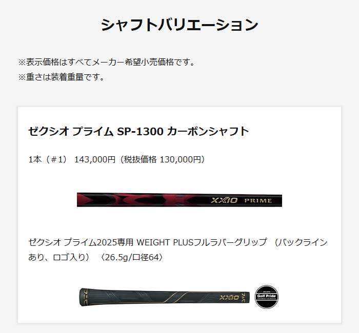 XXIO PRIME SP-1300 カーボンシャフト
