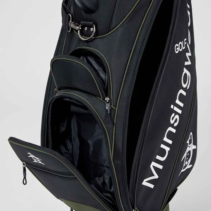 【商品説明】 スポーティなデザインと機能性を両立したカートタイプのキャディバッグ 特徴 ・本格的なシルエットとビッグロゴ、パイピングの配色でスポーティな印象を与えます。 ・マンシングウェアの象徴であるペンギンロゴが、存在感を放ちます。 ・カートでの使用に最適な設計で、スムーズなクラブの出し入れをサポートします。 ・軽量で持ち運びやすく、ゴルフプレー中の負担を軽減します。 ・クラブの出し入れによる生地の劣化を防ぐため、口枠内には樹脂パーツを使用。 ・持ち運びに便利なハンドルやショルダーストラップ付き。 【素材】 ポリエステル 【サイズ】 3.9kg/9.5型/6分割/47インチ対応 【ネームプレートについて】 ご希望の場合は備考欄に記載をお願いいたします。(記載のない場合はネーム刻印無しで発送させて頂きます。) ネームプレートは外注となりますので、キャディバッグ発送後、4週間前後お時間を頂きます。 出来上がり次第、ヤマト運輸DM便にて発送させて頂きます。 ※漢字の場合は6文字程度、アルファベットの場合は12文字程度 ※ネーム内容は漢字かアルファベットのどちらかのみ(2段の刻印は不可) 【ご注意】 お客様都合(サイズが合わない、イメージと違う等)での返品及びキャンセルはお受け出来ません。予めご了承下さい。
