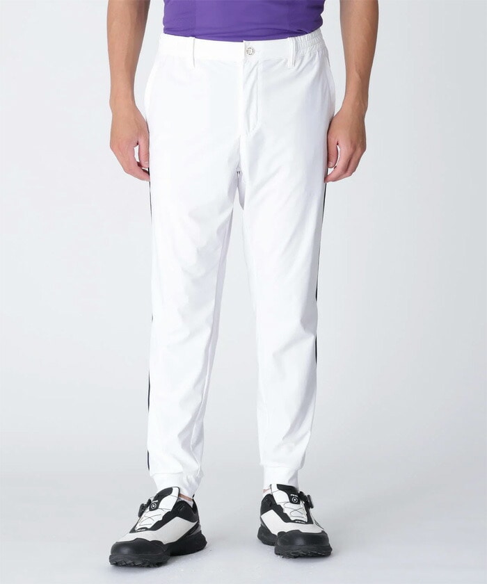 - 【商品説明】 パイピングラインを入れてスポーティーさを出した、コーデュラナイロントリコットジョガーパンツ。 強度、耐久性が特徴のコーデュラ、ベタつきにくい吸水速乾性のあるクイックドライ、全方向によく伸縮するクロスムービング、ひんやりしたはき心地を体感できる接触冷感性のあるクールファンクを採用。 動きやすく、はき心地や着脱が可能なゴムウエストを配置した、着こなしの幅が広がるジョガーパンツです。 抜群の着回し力でゴルフに、アウトドアに、デイリーユースで大活躍します。 【素材】 ナイロン76%ポリウレタン24% 【サイズ】 M:ウエスト76cm/ヒップ102cm/総丈96cm/股上28cm/股下71cm/わたり幅32cm/裾幅12.5cm L:ウエスト80cm/ヒップ105cm/総丈97cm/股上28.5cm/股下73cm/わたり幅33.5cm/裾幅13cm LL:ウエスト85cm/ヒップ112cm/総丈100cm/股上29cm/股下74cm/わたり幅34cm/裾幅13.5cm