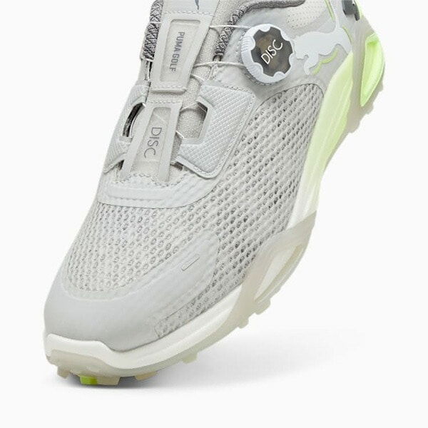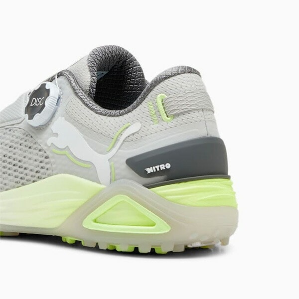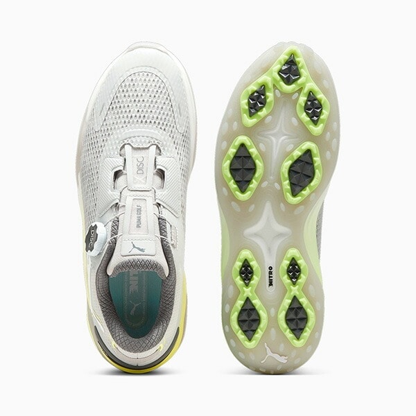 - プーマが提供する革命的なゴルフシューズ、シャドウキャットニトロディスクスパイクレス。 スイング時に爆発的な地面反力をもらたすNITROFOAMを搭載し、飛距離を伸ばしてくれるようサポートします。フィット感調整を簡単にできるディスククロージャー仕様。3つの異なる素材を使用したトラクションと200以上の突起を搭載し、強力なグリップ力と歩行時の快適性を与えてくれます。また、ミッドソールを覆うようにデザインされたアウトソールは、スイング時の体重移動をおさえ、重心をキープしやすい設計。1年間の防水加工により、どんなコンディションでも安心してプレーに集中できます。あなたのスイングを解き放ち、一つ上のレベルに引き上げてくれる一足です。 【商品特徴】 ・NITROFOAM ・グリップ力と快適性を提供するアウトソール ・レギュラーフィット ・サイドにプーマキャットロゴ ・スパイクレス 【素材】 ミッドソール:合成繊維100% 中敷き:テキスタイル100% アウトソール:ラバー76%、合成繊維24% アッパー:合成繊維84%、テキスタイル16% ライニング:テキスタイル100% 【重量】 約424g(27cm) 【足幅】 3E相当