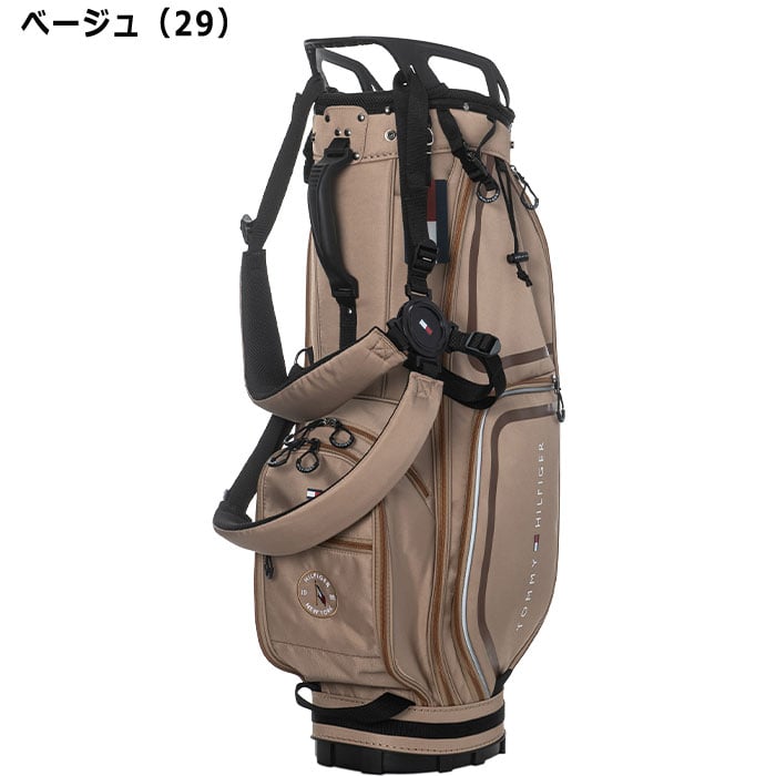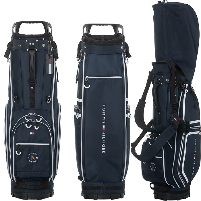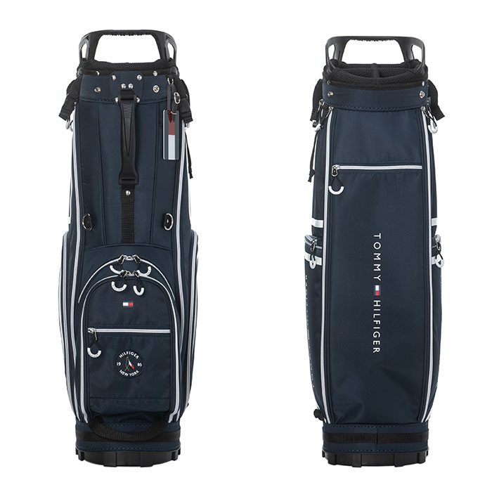 - 高級感のあるツイル素材にラインプリントが施されたキャディバッグ。 両肩で背負えるショルダーベルトを搭載し、セキュリティ・プライバシーを考慮したネームプレートポケット付き。 サイドポケット外側にはリフレクターパイピングを使用しており、夜道での移動も安心です。 口枠は9.0型で5分割、セパレーター数3分割。 ポケットは8つあり、機能性とスタイルを兼ね備えた一品です。 【素材】 素材:ポリエステル ネームプレート:アクリル 【サイズ】 9.0型/5分割/重量3.1㎏/46インチ対応