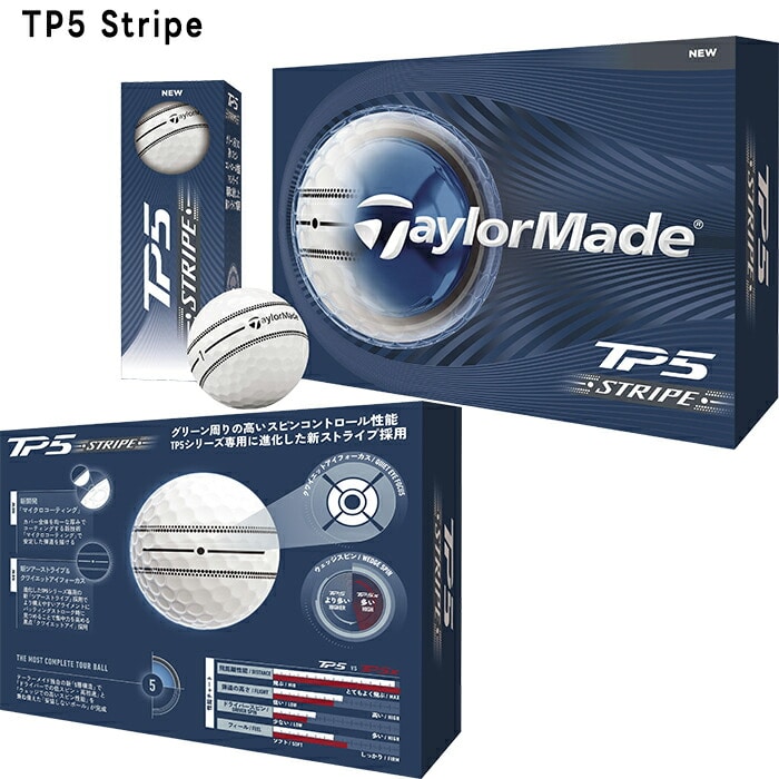 - 【商品説明】 風を制する「マイクロコーティング」搭載 ミクロの厚さで均等にボールをコーティングできるテーラーメイド独自の新技術。 従来のボールだと表面のディンプルにコーティング剤が溜まり弾道のバラつきが発生する中、新しい「TP5」シリーズではこの「マイクロコーティング」により、この肉眼では見えない課題を解決。 飛びを解放。スピンを支配 「最もソフトな5層構造のツアーボール」として支持されてきた「TP5」ボール。 進化した「ツアーフライトディンプルパターン」 再設計された「ツアーフライトディンプルパターン」は、より深いディンプル形状で空気抵抗を抑制。 さらに「マイクロコーティング」との相乗効果により、風を突き抜けるような強い弾道を実現。 スピードの頂へ。 未踏の飛距離へ 新しい「TP5x」ボールでは、再設計された「スピードラップコア」を搭載。 反発係数(COR, Coefficient of Restitution)を高め、卓越したボールスピードを実現。 「クワイエットアイ」新搭載 新しくなった「TP5 Stripe」シリーズでは、アライメントがしやすくなったビジュアルテクノロジーを搭載。 さらにパッティング時の集中力を高める「クワイエットアイ」を新搭載。