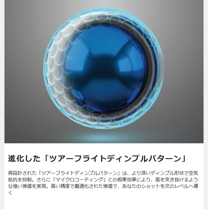 再設計された「ツアーフライトディンプルパターン」は、より深いディンプル形状で空気抵抗を抑制。