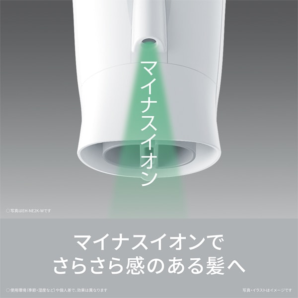 マイナスイオンに含まれる水分を熱から守る外付け方式により、髪にしっかり届ける。