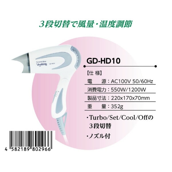 | 機能 | ・Turbo/Set/Cool/Offの3段切替 ・ノズル付 |