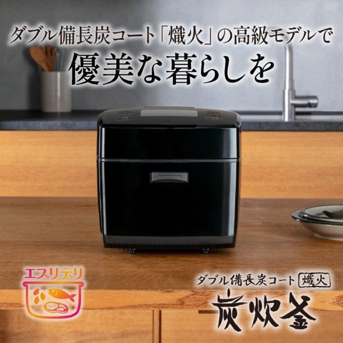 さらに、ダブル備長炭コート熾火おきびによる「炭」の力で、ごはんをふっくら炊き上げます。