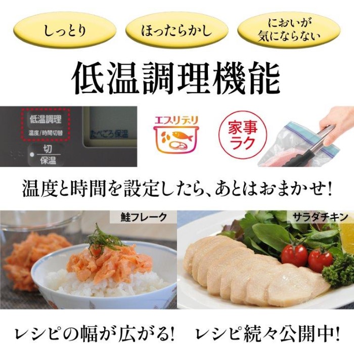 袋に入れて、ほったらかし調理ができる、低温調理機能を搭載。
