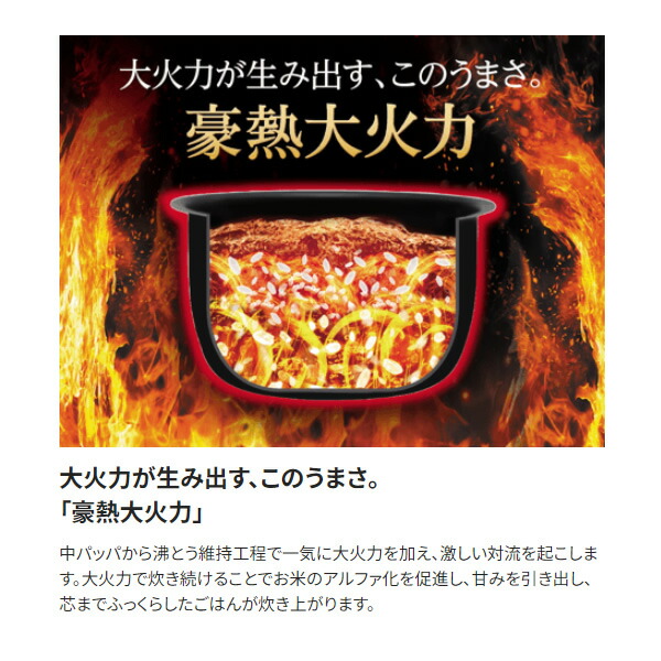 中パッパから沸とう維持工程で一気に大火力を加え、激しい対流を起こします。大火力で炊き続けることでお米のアルファ化を促進し、甘みを引き出し、芯までふっくらしたごはんが炊き上がります。