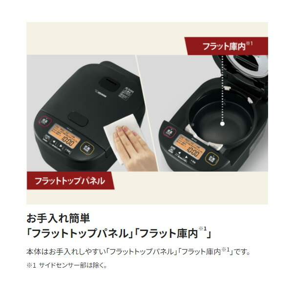 本体はお手入れしやすい「フラットトップパネル」「フラット庫内※1」です。