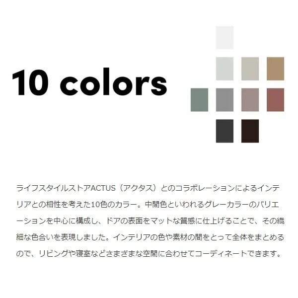 ・ライフスタイルストアACTUS(アクタス)とのコラボレーションによるインテリアとの相性を考えた10色のカラー。