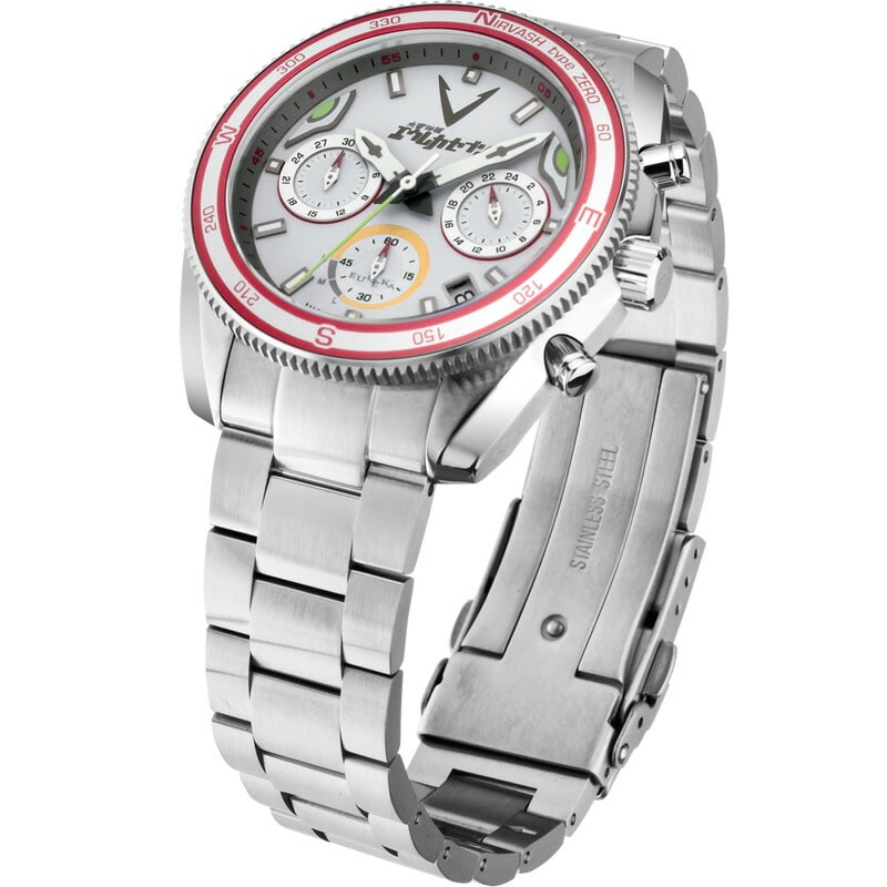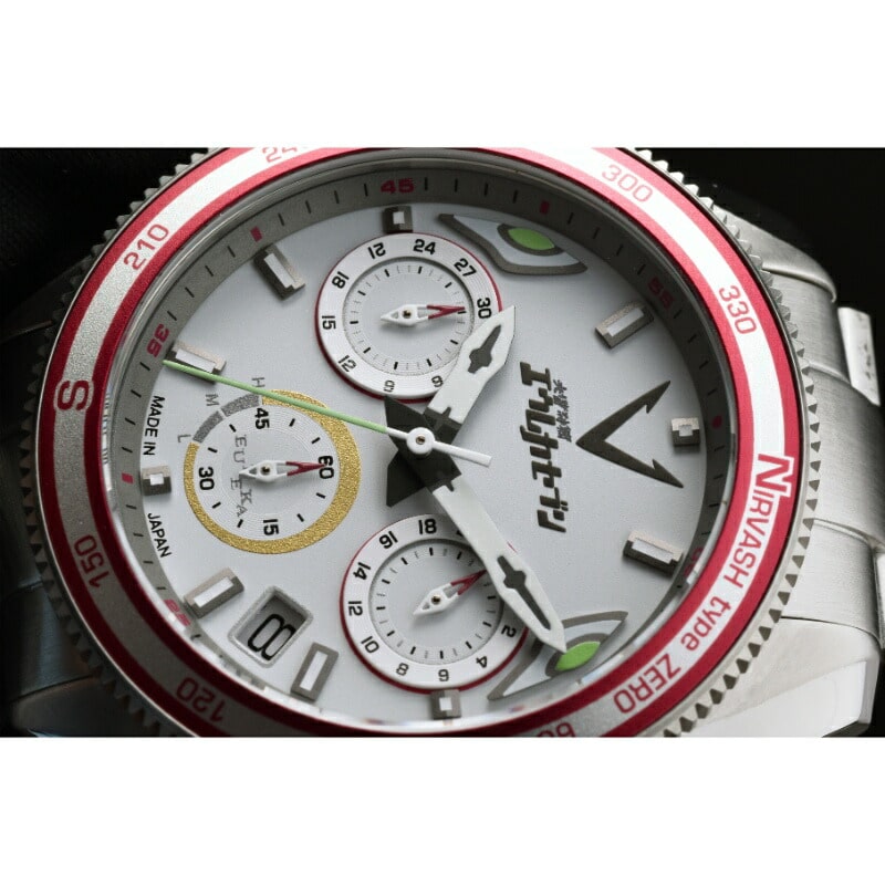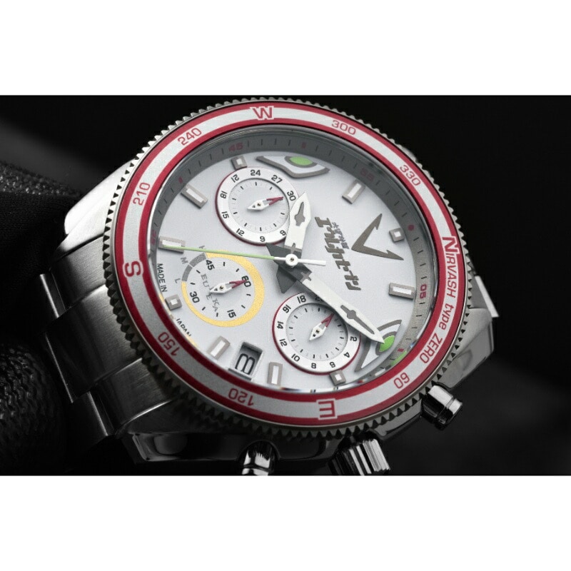 「ニルヴァーシュtype ZERO」をモチーフにした本モデルは、「ニルヴァーシュtype ZERO」のボディーカラーをイメージしたハーフマットホワイトカラーの文字盤を採用。