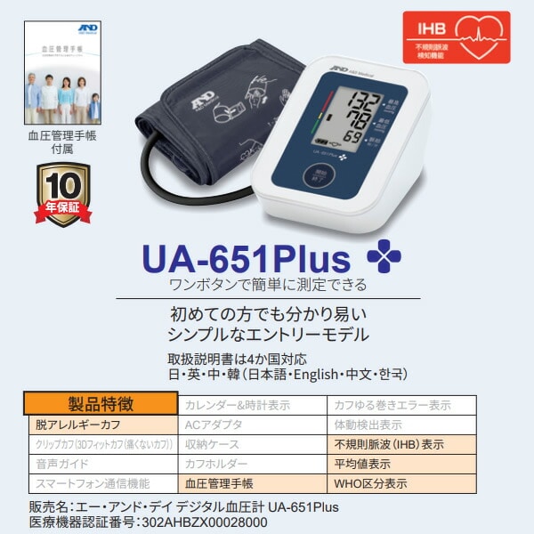 ■販売名:エー・アンド・デイ デジタル血圧計 UA-651Plus