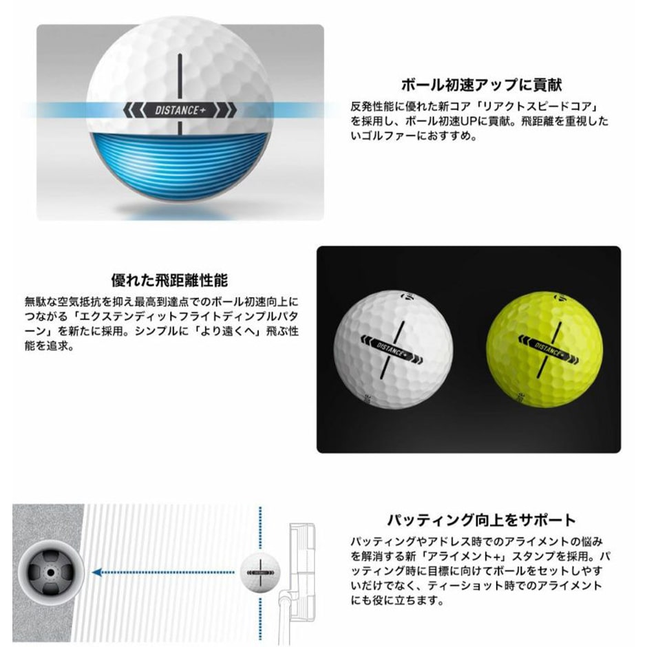 テーラーメイド TaylorMade 2025 ディスタンス+ 1ダース12球入 2ピース ホワイト、イエロー、マルチカラー 日本正規品