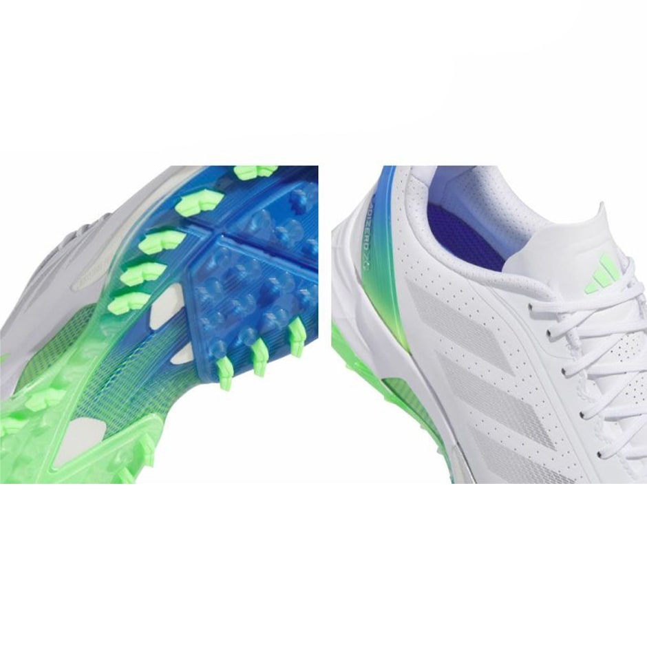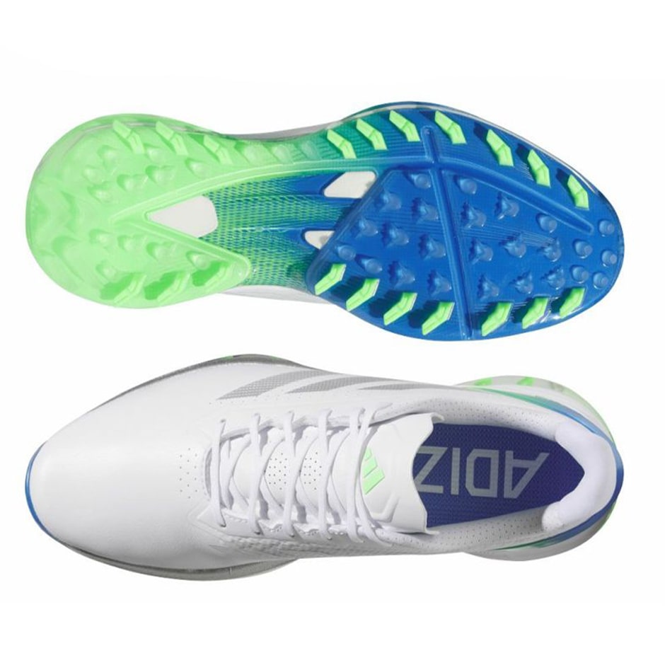 BOOSTと同等のクッション性能に加え、高反発性能によってスイング時に鋭い蹴りを可能にする。屈曲時の形状維持性能によって、高い推進力も誇る。ヒール周りには通常のLIGHTSTRIKEによって、さらに反発力を高めながら安定性を担保。◆ DYNAMIC TORSION PLATE ◆ スイング時のパワーを増幅する足裏の特殊パーツ。中足部アーチをホールドし、トルクコントロールをつま先までもたらすことでエネルギーロスを軽減。3本のブレードがLIGHTSTRIKE PROに接着され、相乗効果で推進力を高めることで、鋭い蹴りを可能にしながら歩行時の疲労を軽減。 ◆ スパイクモアアウトソール ◆ スパイクとスパイクレスの長所を併せ持ち、歩行時とスイング時の性能を自動的に切り替わるテクノロジーがさらに進化。屈曲する外周のアームにより、軽快な歩行と驚異的なグリップ力を両立。中心部の特殊なラグ形状でダイナミックなフットワークを高次元でサポート。